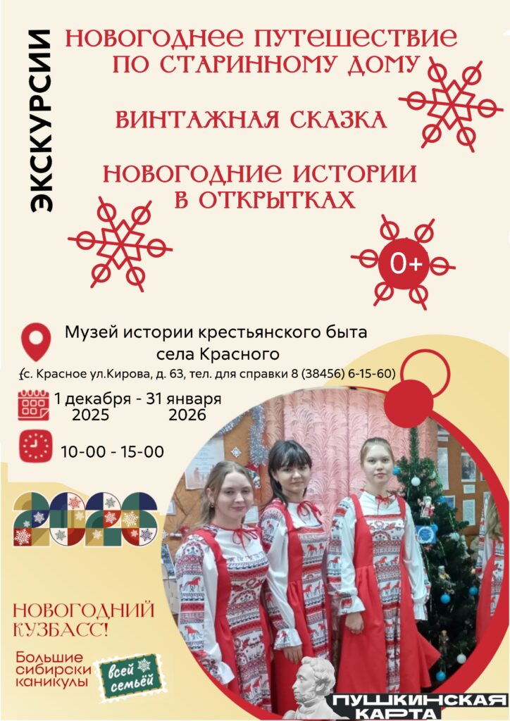 Предлагаем вам посетить увлекательные новогодние экскурсии и выставки, наполненные историей, традициями и чудесами!«Новогоднее путешествие по старинному дому» Погрузитесь в уютную атмосферу праздничного интерьера первой половины 20 века, познакомьтесь с семейными новогодними традициями того времени, узнайте секреты украшения дома.